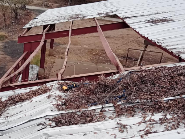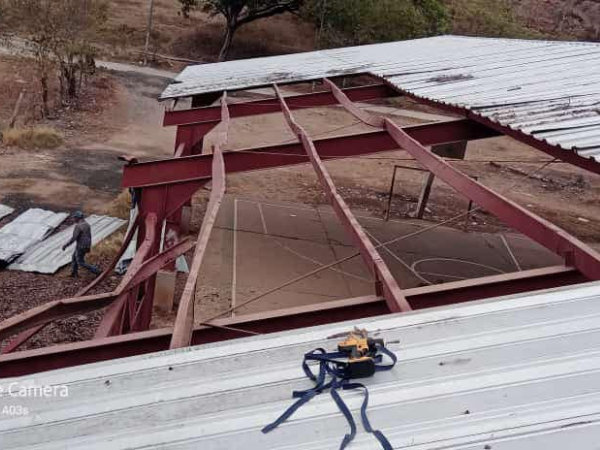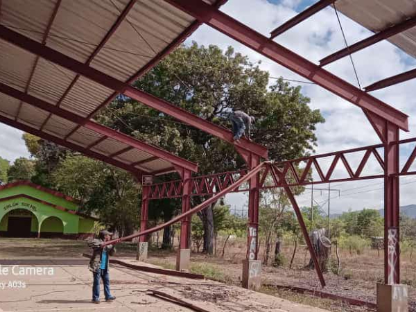 La Administración Municipal dio inicio a la reparación del Techado de la Cancha Deportiva de la aldea Río Chiquito.