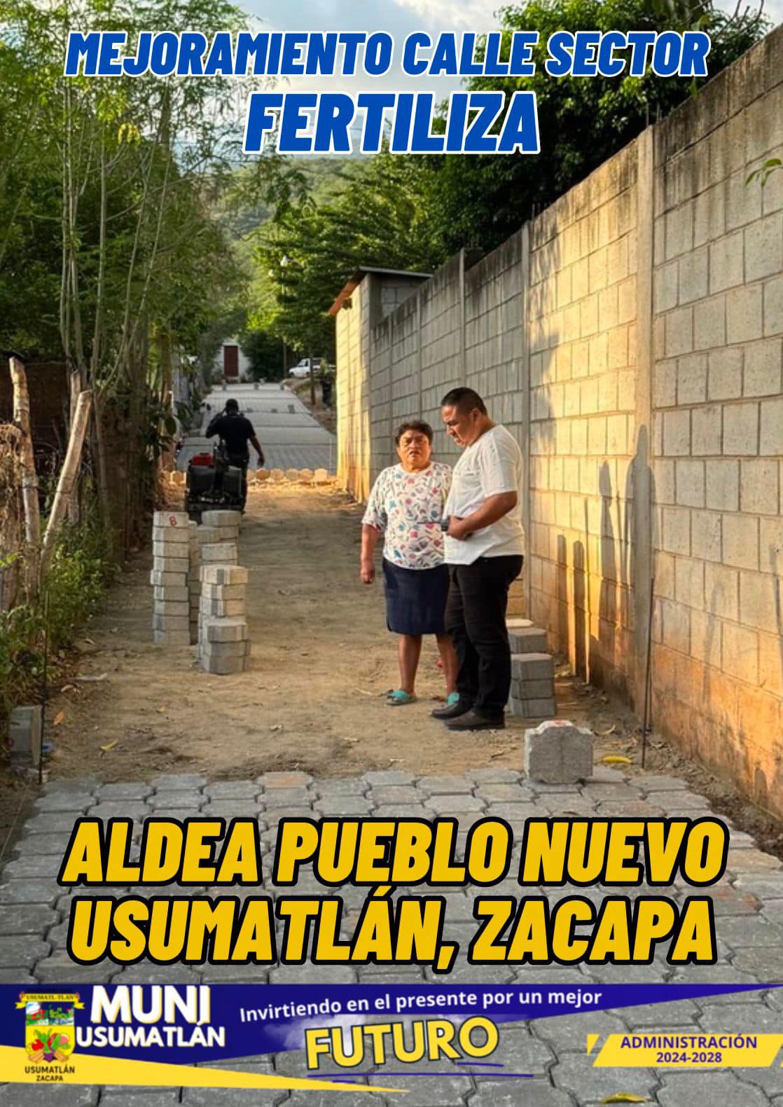 Supervisión del Proyecto Adoquinado Sector Fertiliza Aldea Pueblo Nuevo Usumatlan, gracias a la Gestión del Cocode y tu Muni por priorizar dicho sector para los vecinos de la aldea Pueblo Nuevo.